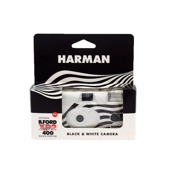 Disposable camera, black and white, 400 ISO, 27 exposures, flash.
