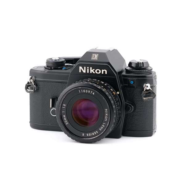 Sorti en 1979, le Nikon EM est le plus léger des reflex Nikon manuels. Il a été imaginé pour les amateurs exigeants souhaitant une entrée simple dans l’univers Nikon. Son design signé Giorgetto Giugiaro, sa cellule intégrée et son automatisme par priorité ouverture ont marqué une nouvelle ère pour la marque japonaise.